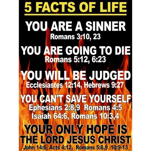 God’s simple plan of salvation is: You are a sinner. Therefore, unless you believe on Jesus Who died in your place, you will spend eternity in Hell. If you believe on Him as your crucified, buried, and risen Savior, you receive forgiveness for all of your sins and His gift of eternal salvation by faith.
